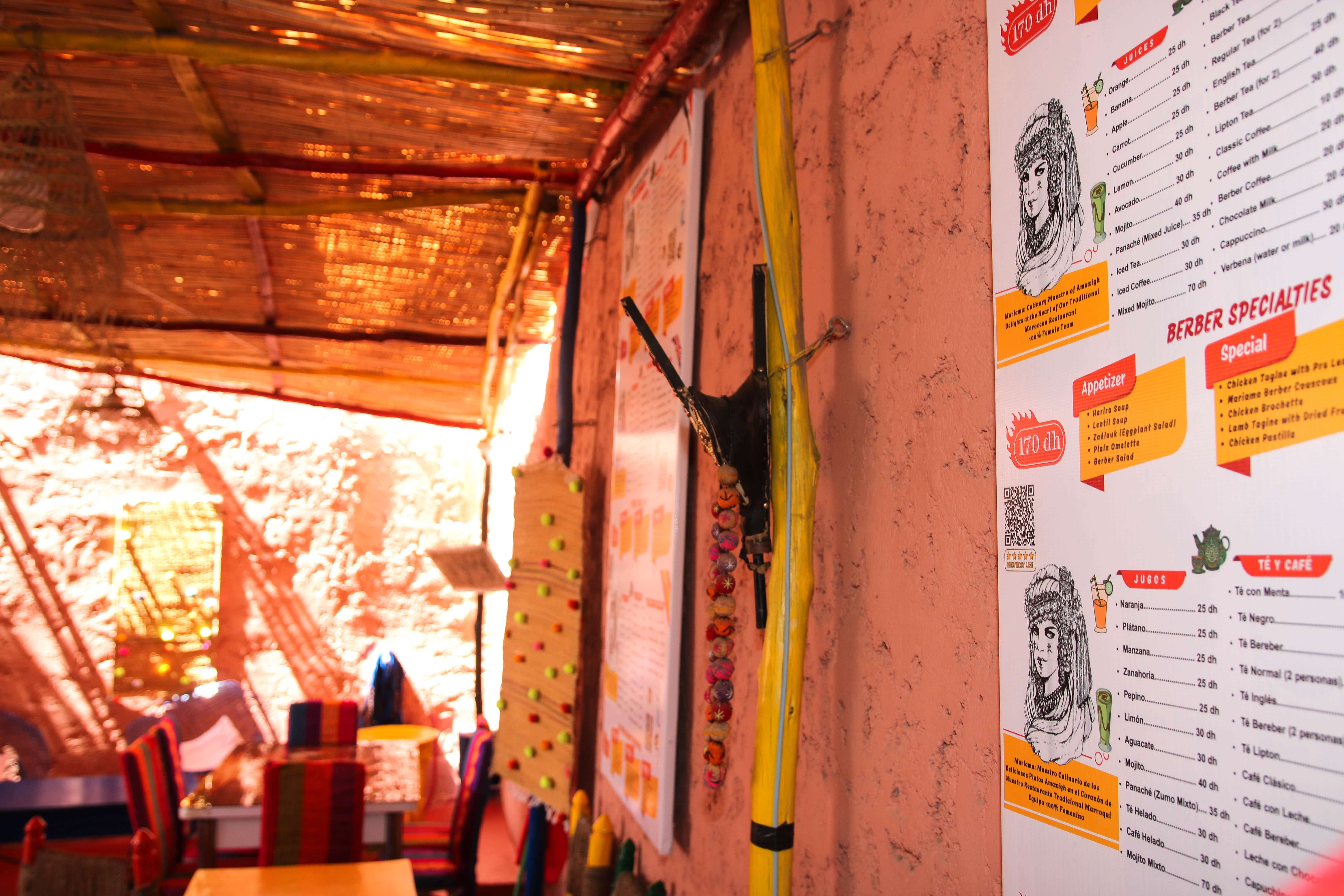 Explore the warm, authentic atmosphere of Chez Mariama Berbère and its traditional Berbère design and culture.